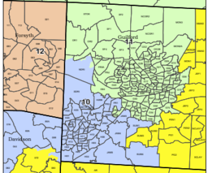 The congressional map takes Guilford County, which currently is entirely in the 6th Congressional District and divides the county into three districts.
