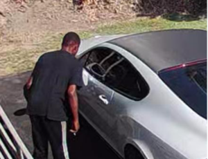 man looking in car